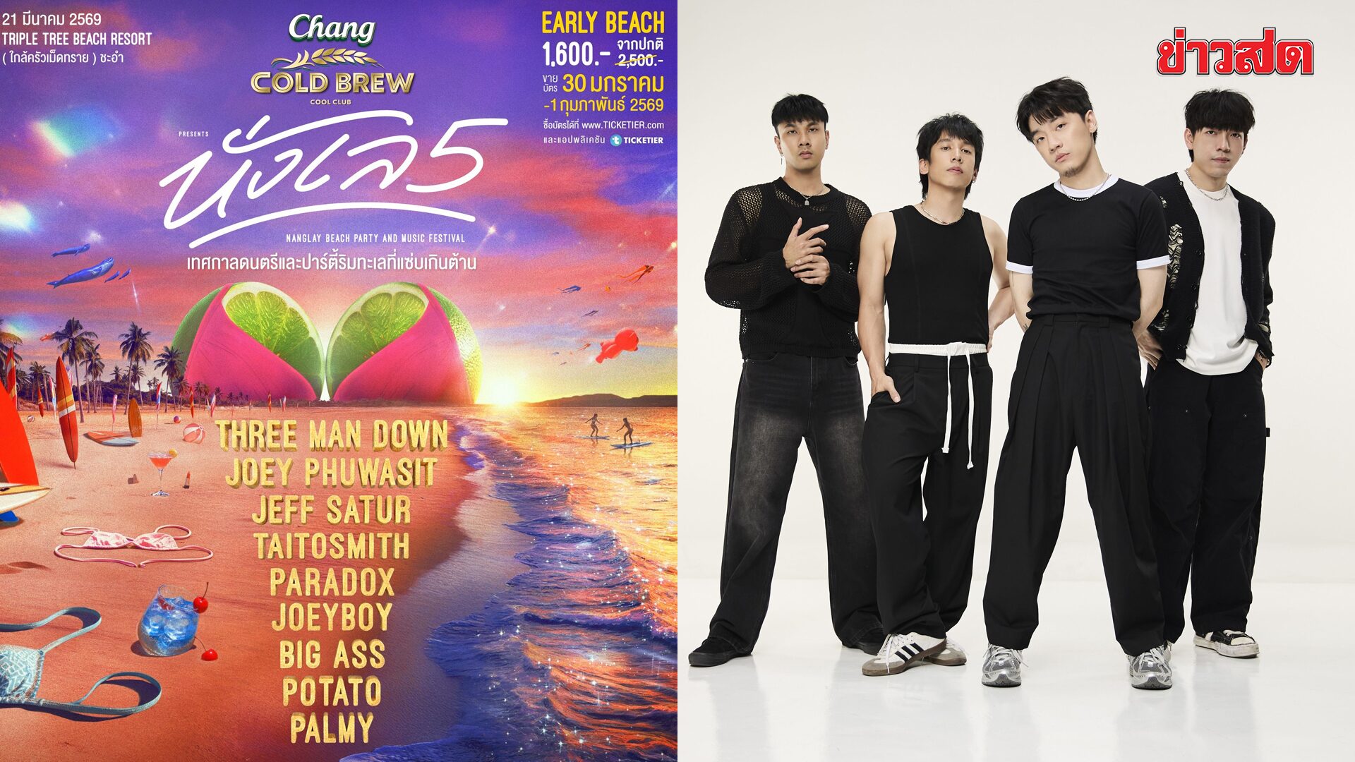 GMM SHOW ผู้จัดงานคอนเสิร์ตและเฟสติวัลชั้นนำของประเทศไทย ประกาศความพร้อมในการจัดงาน Chang Cold Brew Cool Club Presents “นั่งเล 5” เทศกาลดนตรีและปาร์ตี้ริมทะเลที่แซ่บเกินต้าน ที่ยืนหนึ่งคอนเซ็ปต์ “ซัมเมอร์แรกที่แซ่บที่สุด” ซึ่งจะจัดขึ้นในวันเสาร์ที่ 21 มีนาคม 2569 ณ TRIPLE TREE BEACH RESORT อำเภอ ชะอำ จังหวัด เพชรบุรี ในปีนี้ถูกออกแบบให้ได้รับประสบการณ์แบบ HYBRID SPACE ซึ่งเป็นการผสมผสานไลฟ์สไตล์ทางทะเลให้เข้ากับบรรยากาศปาร์ตี้ได้อย่างลงตัว เพื่อสร้างสรรค์ประสบการณ์ที่มากกว่าการชมคอนเสิร์ต และตอบโจทย์ทั้งสายชิลปล่อยจอยและสายปาร์ตี้ปล่อยสุดได้อย่างเต็มอิ่มครบทุกมิติ ทุกคนจะได้สัมผัสความสนุกและความชิลที่แตกต่างกันไป ตามช่วงเวลาของวัน เริ่มจากช่วงเวลาก่อนพระอาทิตย์ตกดิน เป็นช่วงเวลาแห่งการพักผ่อนและเติมเต็มความแซ่บ สามารถปล่อยจอยไปกับพื้นที่ BEACH LOUNGE ที่สร้างขึ้นมาใหม่ในปีนี้ พร้อมกิจกรรมและบริการสุดพิเศษ อาทิ POP-UP CAFÉ กับเครื่องดื่มที่ถูกออกแบบมาเพื่องานนี้เท่านั้น, BEACH THERAPY (บริการนวดริมทะเล) สำหรับคนที่ชอบความผ่อนคลายบวกกับความชิลวิวทะเล จากนั้นปล่อยใจไปกับเสียงดนตรีจากดีเจชั้นนำ ที่ออกมาต้อนรับเข้าสู่บรรยากาศความสนุก ถือว่าได้เริ่มอุ่นเครื่อง สามารถโยกตามกันเบาๆ […]