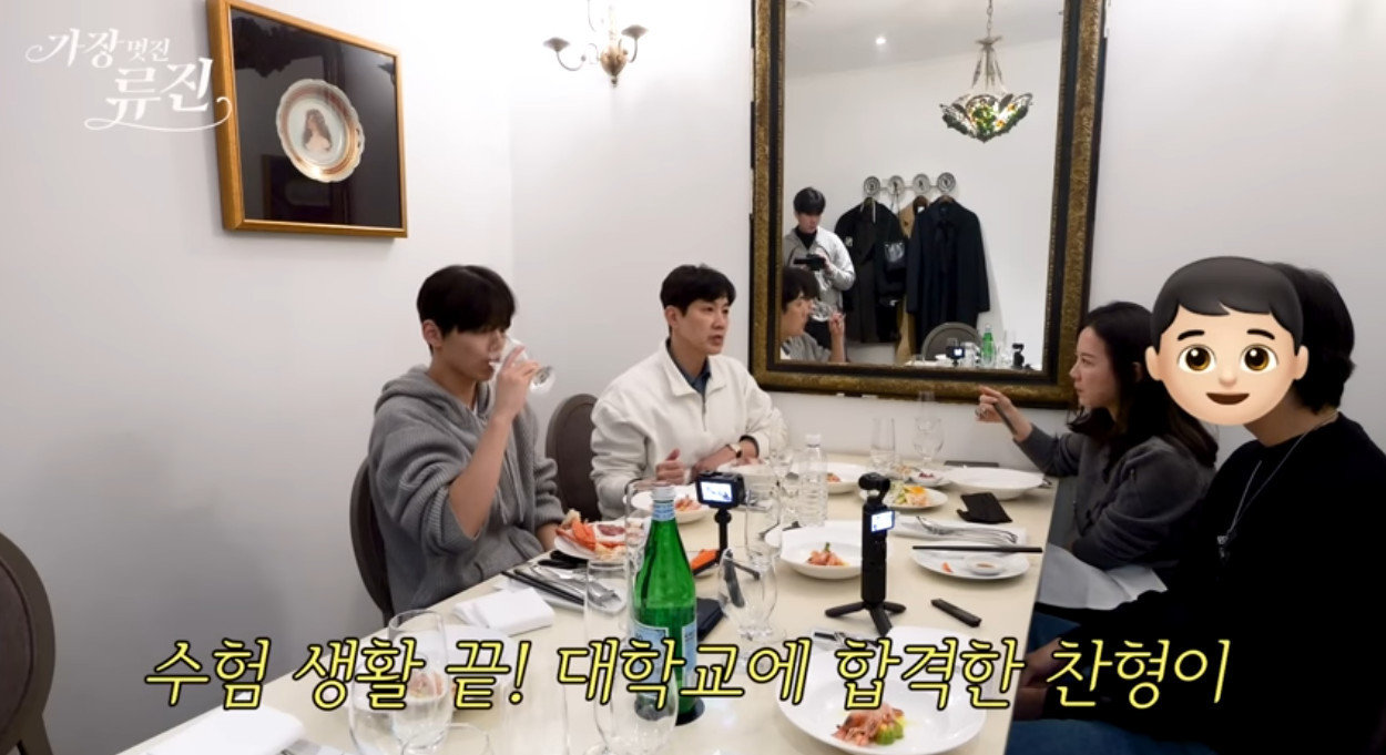 배우 류진의 첫째 아들 찬형 군이 미국 버클리 음대에 진학한다.지난 12일 유튜브 채널 ‘가장(멋진)류진’에는 ‘2026년 류진 가족 중대발표(대학합격, 실버버튼)’이라는 제목의 영상이 게재됐다.해당 영상에서 류진은 아내 그리고 두 아들 찬형, 찬호 군과 신년을 맞아 가족 모임을 가졌다. 그는 “찬형이가 좋은 소식도 있고 겸가겸사”라며 모임을 갖는 이유를 밝혔다.이후 레스토랑에서 류진은 “사실 오늘 여기까지 와서 이렇게 식사한 이유 중 가장 큰 이유”라고 운을 뗀 후 “크리스마스도 있지만 고3인데 결실을 맺은 게 너무 대견하다”고 말했다.앞서 류진 아내는 최근 자신의 인스타그램을 통해 찬형 군이 버클리 음대에 합격한 소식을 전했다. 찬형 군은 보스턴 버클리 음대 음악산업리더십을 전공할 예정이다.류진 아들 찬형 군은 “앞으로도 우리 가족에게 좋은 일만 있길 바란다”고 건배사를 했다. 또한 대학 진학 이유에 대해 “목표가 되면 안 되고 더 나아가는 데 도구가 돼야 한다 생각한다