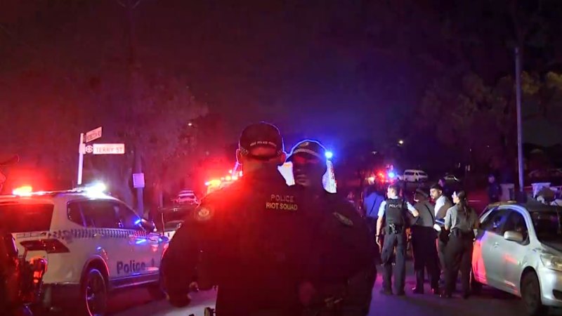 A man has been stabbed after a brawl of more than 50 people broke out outside a home in Sydney's west.
