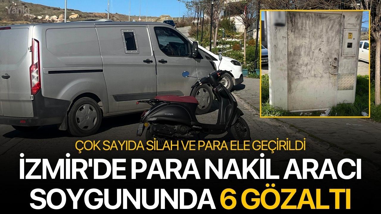 İzmir'in Karabağlar ilçesinde, para nakil aracına yönelik gerçekleştirilen silahlı soygun olayıyla ilgili yürütülen çalışmalarda 6 şüpheli gözaltına alındı. Operasyonda çalınan paraların bir kısmı ile çok sayıda silah ele geçirildi.
