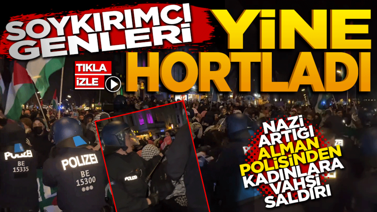 Geçmişinde on binlerce Yahudiyi gaz odalarında katleden Almanya, bugün suçluluk psikolojisiyle siyonizmin kölesi haline gelmiş durumda. Berlin sokaklarında Filistinli mazlumların sesi olmak isteyen savunmasız kadınlar, faşist Alman polisinin coplu ve tekmeli saldırısına uğradı.