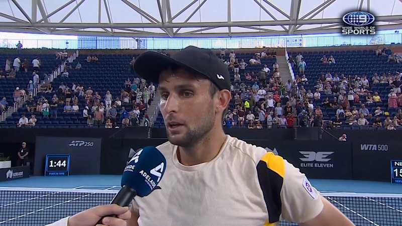 Australia's Aleksander Vukic learns in real-time who he will face in the quarter finals at the Adelaide International.