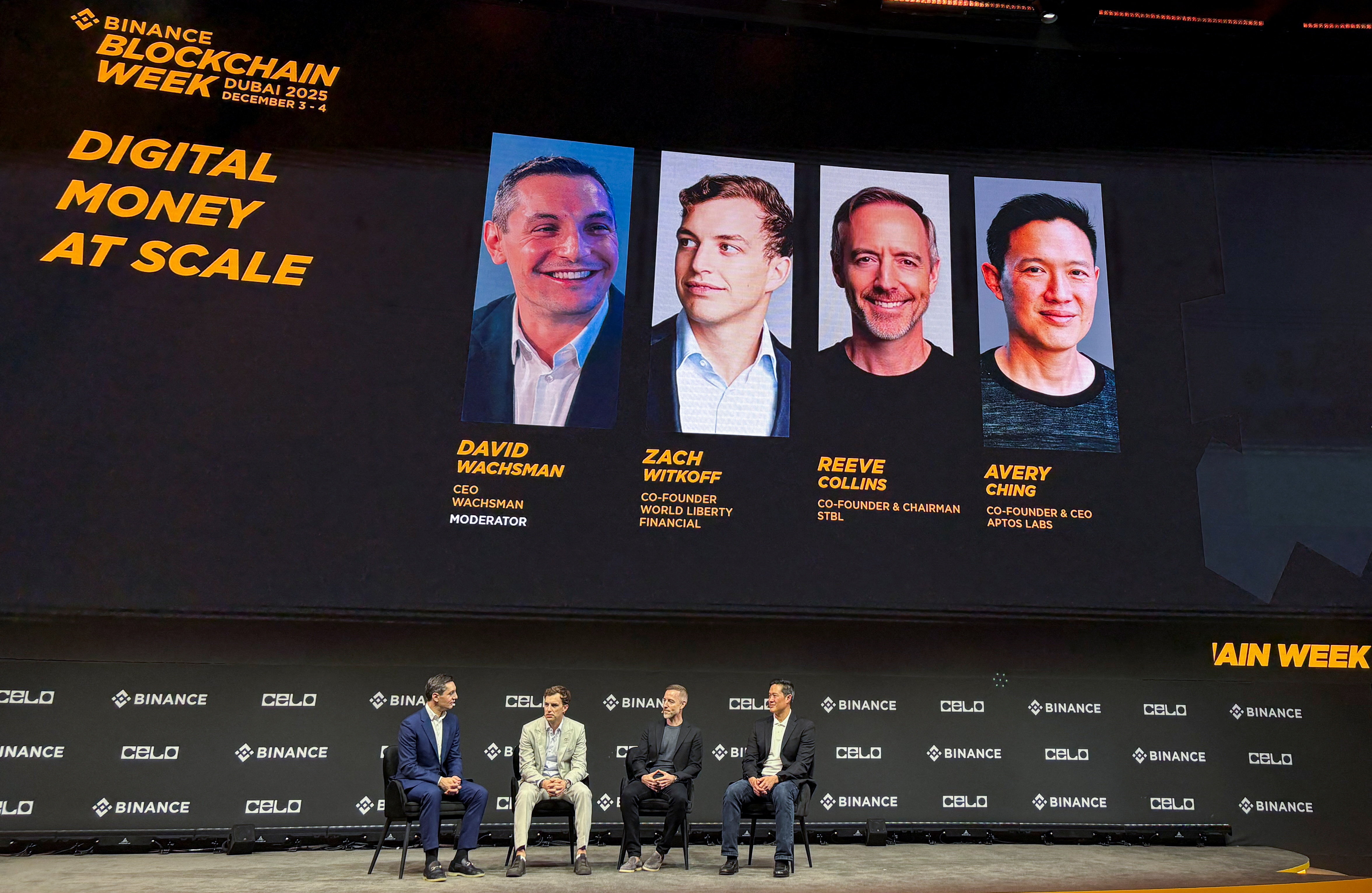 ورلڈ لبرٹی فنانشل کے شریک بانی اور سی ای او زیک وِٹکوف تین دسمبر 2025 کو دبئی، متحدہ عرب امارات میں بائنانس بلاک چین ویک کے دوران خطاب کر رہے ہیں۔ (روئٹرز)