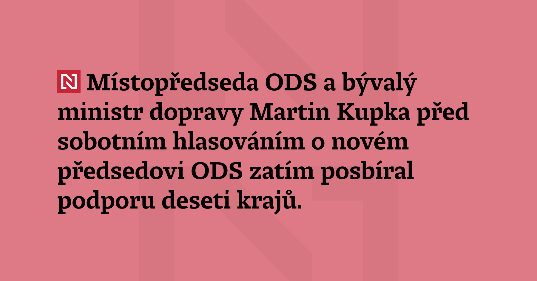 Místopředseda ODS a bývalý ministr dopravy Martin Kupka před sobotním hlasováním o novém předsedovi ODS zatím posbíral podporu deseti krajů. Ve třech nezískal většinu. Dnes cyklus končí v Praze. (ČTK)
