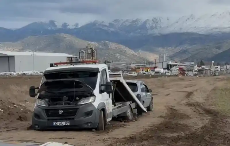 Isparta'da üç çekici peş peşe çamura saplandı