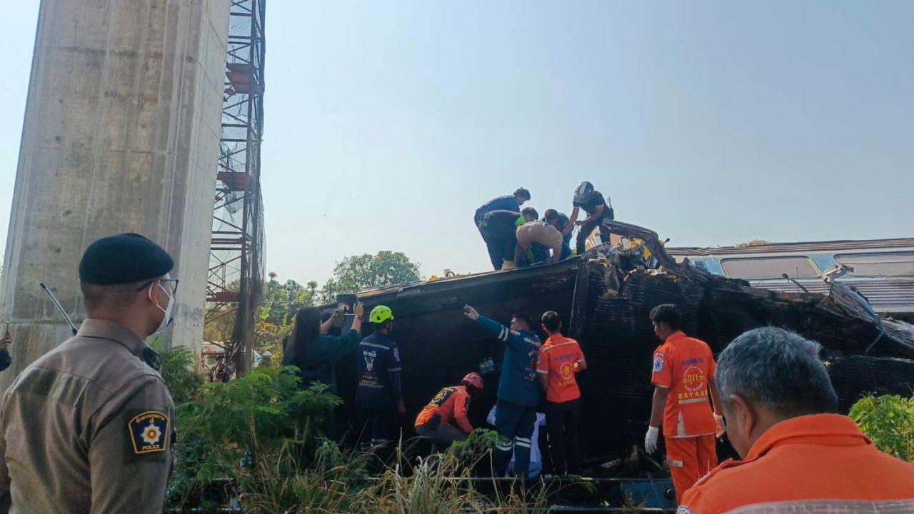 คืบหน้าเหตุเครนก่อสร้างหล่นทับขบวนรถด่วนพิเศษที่ 21 ที่จังหวัดนครราชสีมา ล่าสุดยอดผู้เสียชีวิตเพิ่มเป็น 28 ราย ขณะที่ผู้ว่าฯโคราช สั่งหยุดการค้นหาผู้เสียชีวิตที่อยู่ในตู้โบกี้รถไฟชั่วคราว