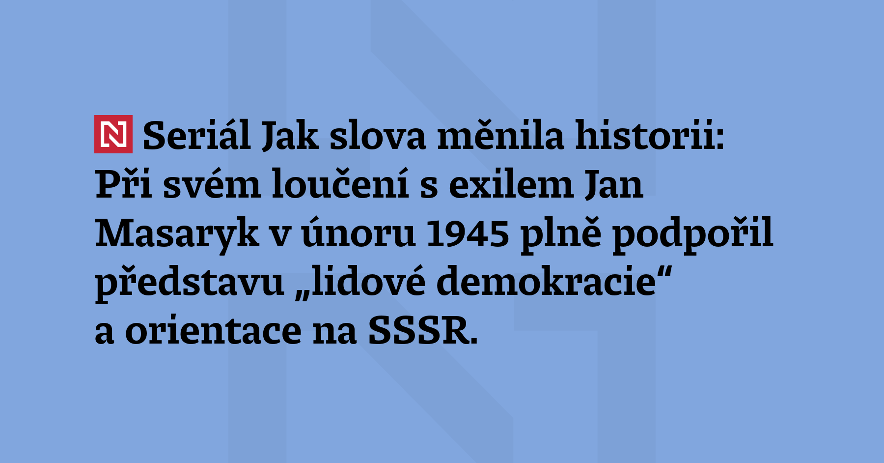 Seriál Jak slova měnila historii: Při svém loučení s exilem Jan Masaryk v únoru 1945 plně podpořil představu „lidové demokracie“ a orientace na SSSR. Jeho konejšivý hlas připravoval půdu pro novou éru podle Benešových not.