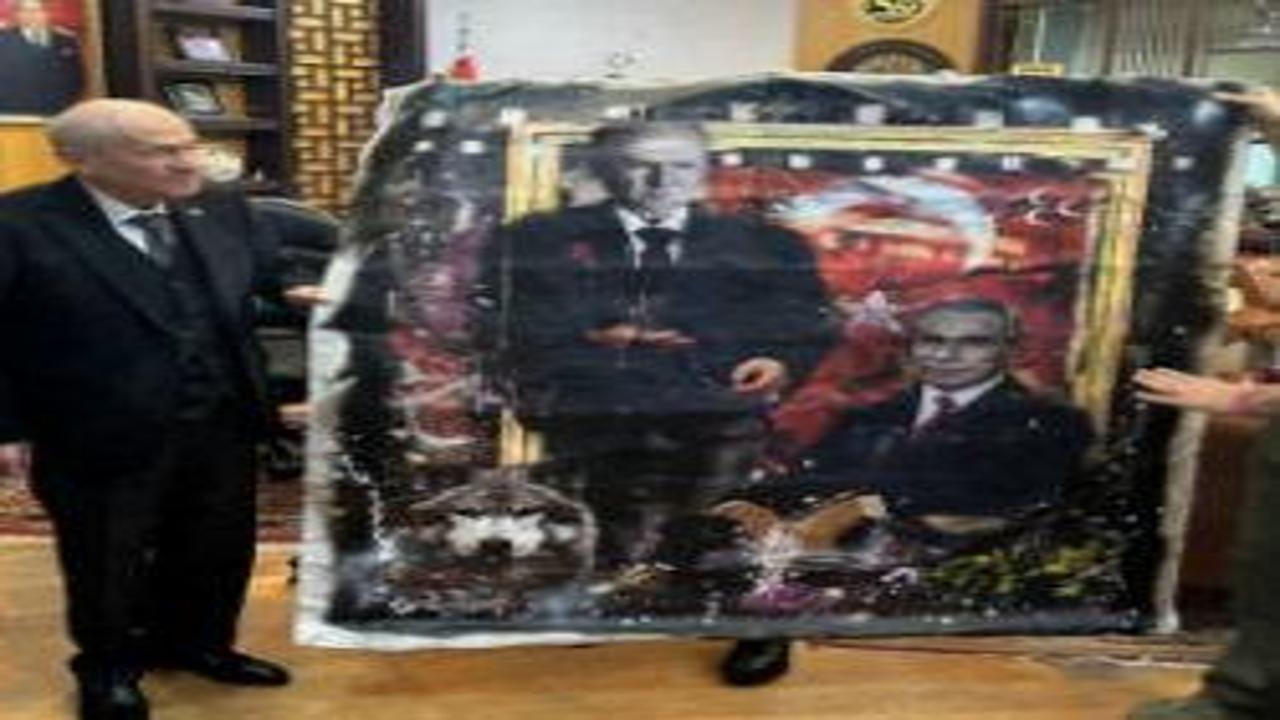 MHP Genel Başkanı Devlet Bahçeli, ressam Ersan Kay'ı kabul etti. Ersan Kay, Bahçeli'nin sprey boya ile yaptığı 2 tablosunu kendisine hediye etti.