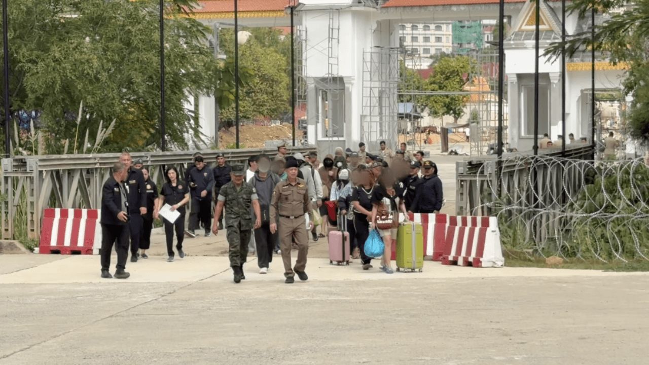 ตำรวจไทย ประสานรับตัวคนไทย 28 ราย เดินทางกลับประเทศ บริเวณจุดผ่านแดนถาวรบ้านผักกาด จ.จันทบุรี หลังถูกกวาดล้างในกัมพูชา รวมถึงนักศึกษาลำปางวัย 20 ปี ที่ถูกลวงไปทำงานสแกมเมอร์