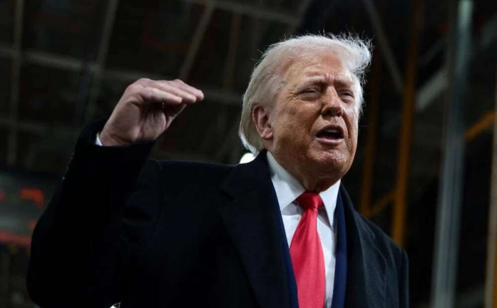 Skandāls "Ford" rūpnīcā: Tramps parāda vidējo pirkstu protestētājam, kurš viņu nosauc par "pedofilu aizstāvi"