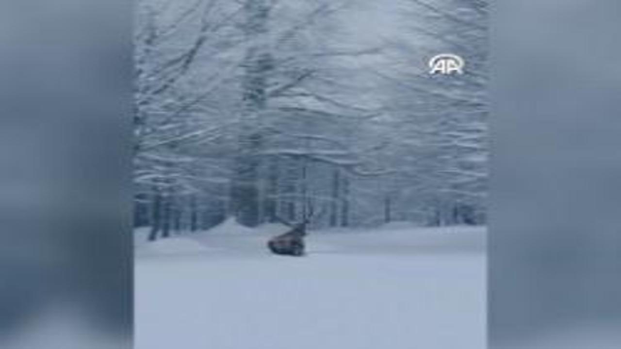 Kocaeli'nin Kartepe ilçesinde, karla kaplanan Kuzuyayla Tabiat Parkı'nda gezen kızıl geyik, cep telefonu kamerasıyla görüntülendi.