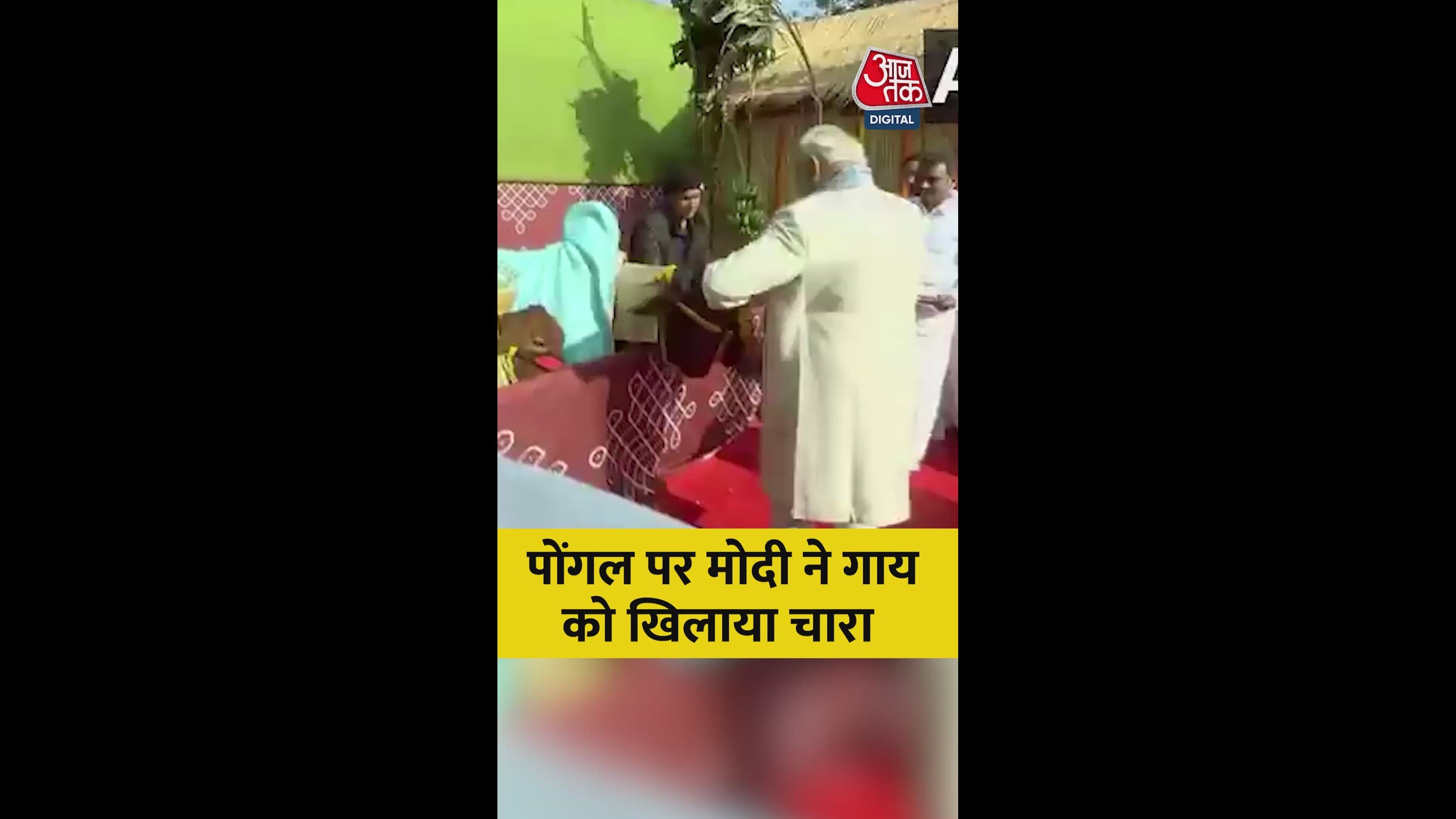 पोेंगल पर्व पर PM मोदी ने गाय को खिलाया चारा