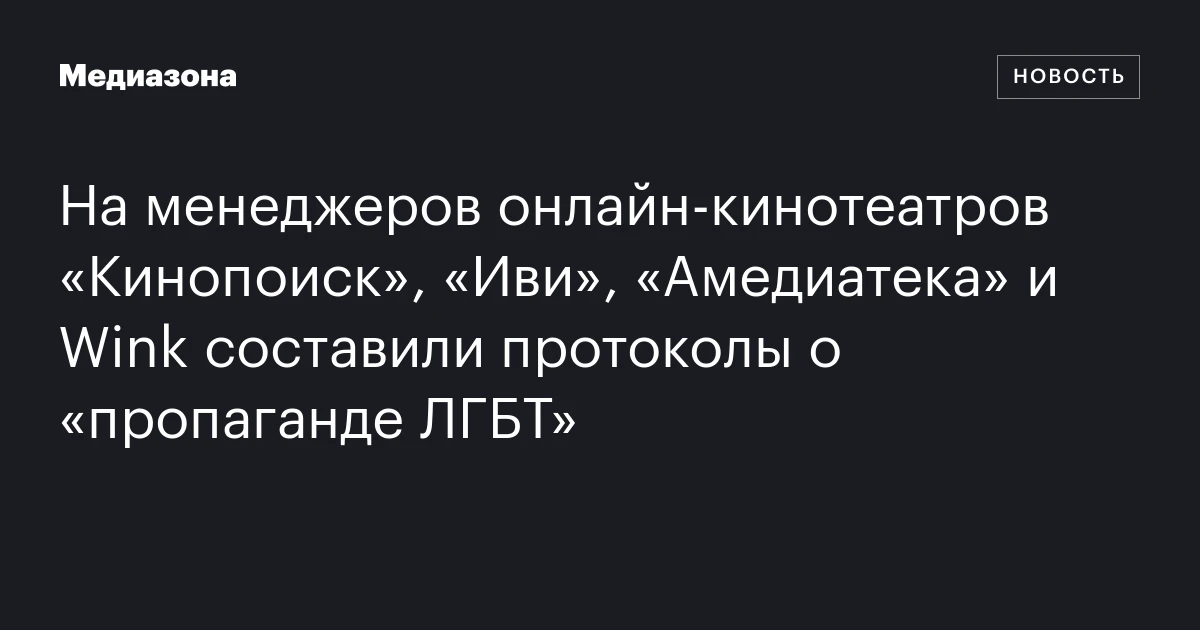 На менеджеров онлайн‑кинотеатров «Кинопоиск», «Иви», «Амедиатека» и Wink составили протоколы о «пропаганде ЛГБТ»