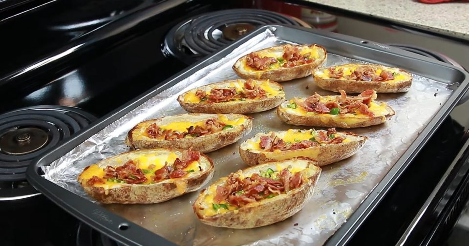 Ова јадење ја комбинира крцкавата надворешност на компирите со стопениот кашкавал и ароматичен сув врат (или сланина). Идеален избор е како главно јадење или како додаток во салата. Состојки (за 4 лица): - 8 големи компири - 200–250 г кашкавал по ваш избор (трапист/гауда/едамер), рендано - 150–200 г сув врат или сланина, исечени на коцки - 2–3 лажици маслиново масло - Сол и бибер по вкус - По желба: сечкан млад кромид или павлака за сервирање Подготовка: Загрејте ја рерната на 200°C. Измијте ги компирите и добро исушете ги. Не ги лупете, туку оставете ги во лушпата. Премачкајте ги компирите со масло и наросете ги со малку сол и бибер. Печете ги целите компири во рерна 40-50 минути додека не омекнат. Проверете со вилушка. Извадете ги компирите, исечете ги на половина по должина и внимателно извадете го центарот со лажица (зачувајте дел од месото од компирот). Вклучете ја рерната повторно на 220°C (печете на скара ако имате). Измешајте го средниот дел од компирите со сувиот врат/сланина и распределете ја смесата назад во компирите. Посипете кашкавал обилно врз секој компир. Вратете во рерна 10-15 минути додека сирењето не се стопи и убаво не порумени. Сервирајте топло, украсено со сечкан млад кромид и, ако сакате, со лажица павлака од страна.