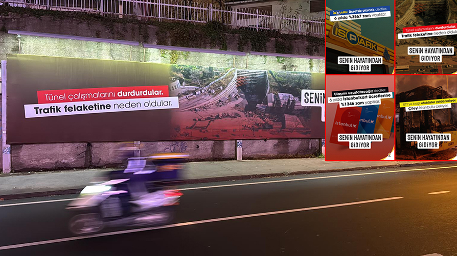 AK Parti İstanbul İl Başkanlığı, kent genelindeki billboardları CHP'li yönetimin seçim zamanında verip yerine getirmediği vaatlerle donattı. Megakentin çözülemeyen sorunlarını, trafik ve toplu taşıma çilesini, gelen zamları konu edinen AK Parti, billboardlarda İstanbullu vatandaşlara hitaben "Senin hayatından gidiyor." ifadelerini kullandı.