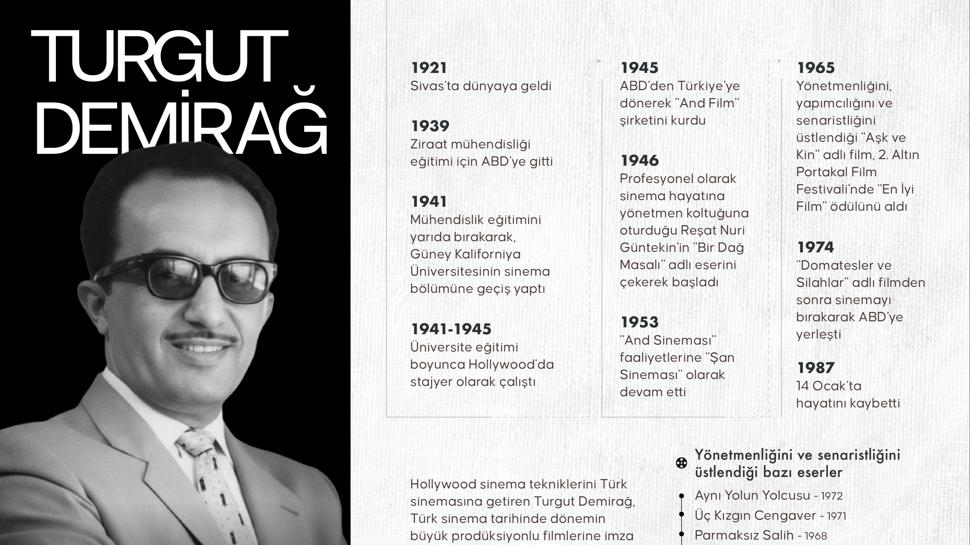 Türk sinemasının "büyük prodüksiyonlu" filmlerine imza atan yapımcı, yönetmen ve senarist Turgut Demirağ'ın vefatının üzerinden 39 yıl geçti. ABD'deki sinema eğitiminin ardından Türkiye'ye dönerek "And Film"i kuran usta isim, sektöre profesyonel bir vizyon kazandırdı