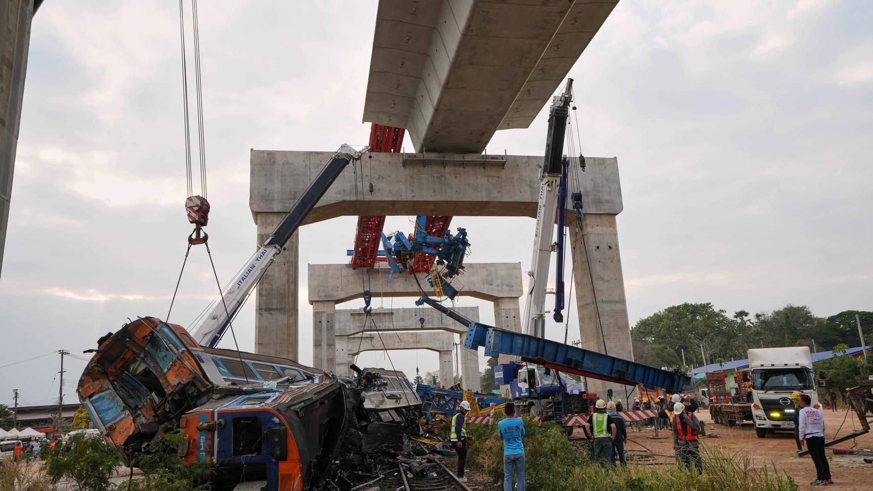 Trešdien Taizemes ziemeļaustrumos ceļamkrāns uzkrita braucošam pasažieru vilcienam, kā rezultātā vilciens noskrēja no sliedēm, nogalinot vismaz 29 cilvēkus, ziņo aģentūra AP.