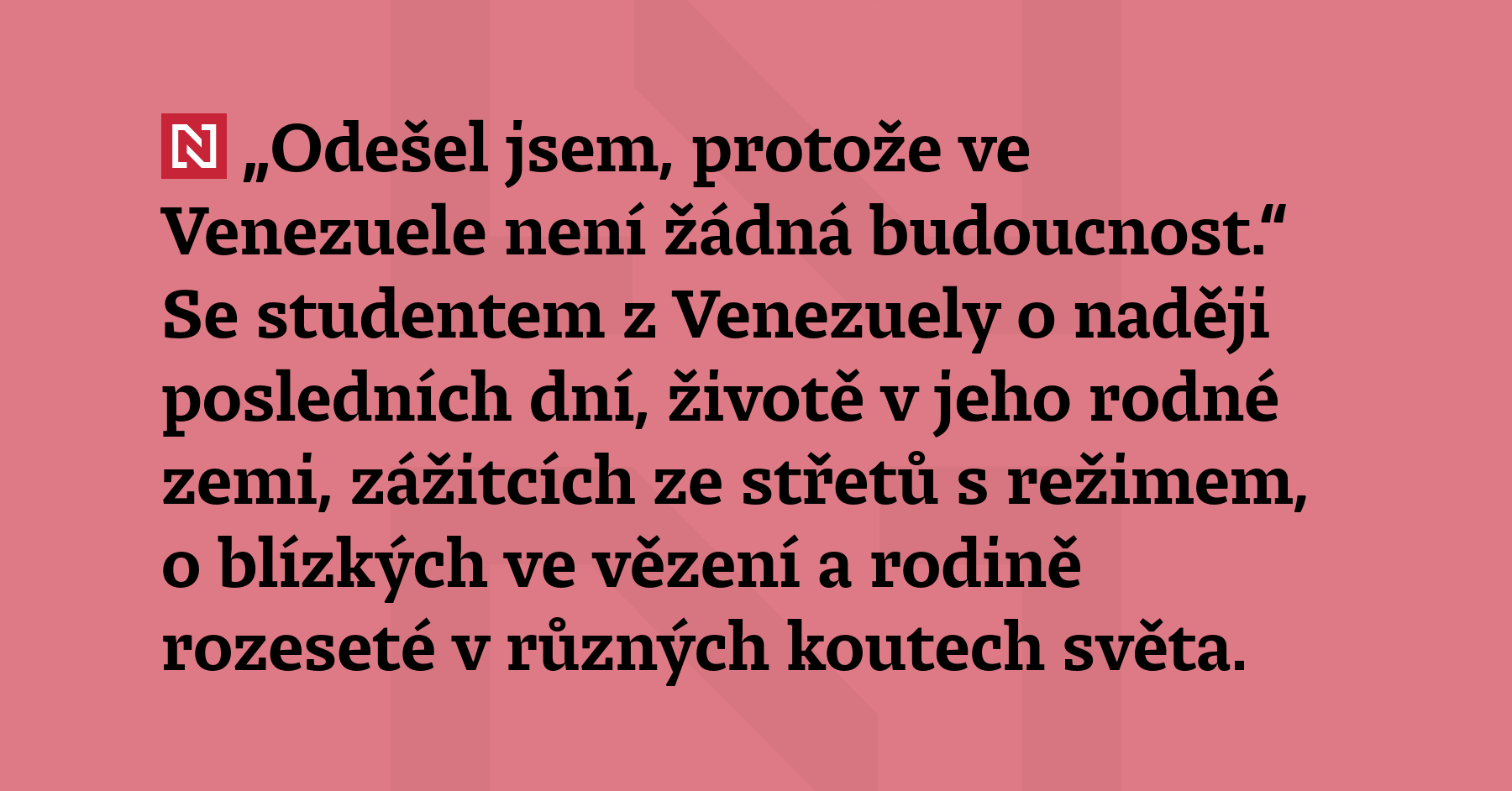 „Odešel jsem, protože ve Venezuele není žádná budoucnost.“ Se studentem z Venezuely o naději posledních dní, životě v jeho rodné zemi, zážitcích ze střetů s režimem, o blízkých ve vězení a rodině rozeseté v různých koutech světa.