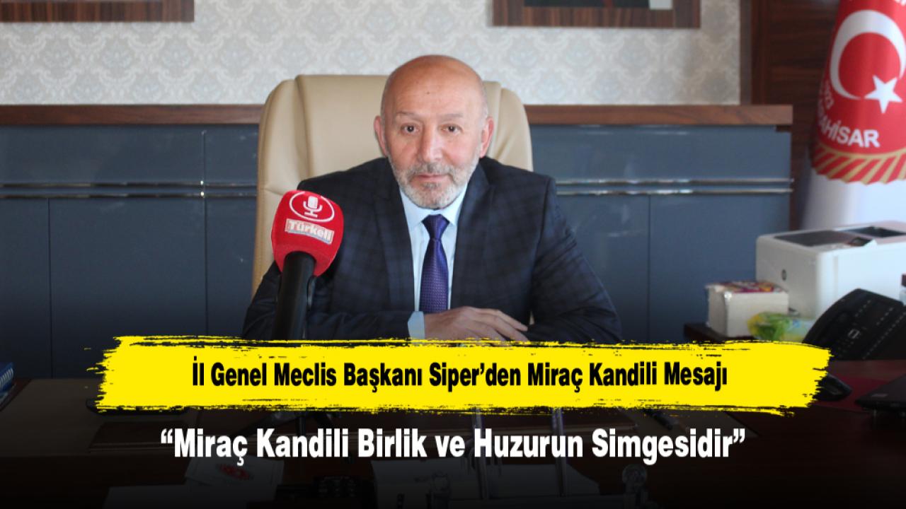 Afyonkarahisar İl Genel Meclis Başkanı Mehmet Siper, Miraç Kandili dolayısıyla yayımladığı mesajda birlik, hoşgörü ve manevi huzur vurgusu yaptı.