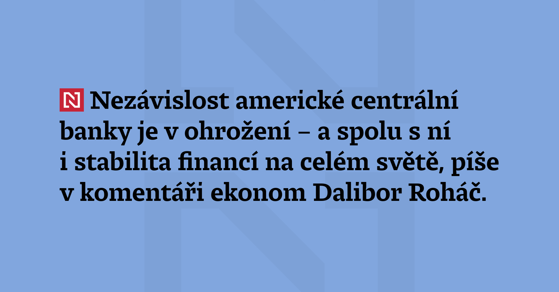 Nezávislost americké centrální banky je v ohrožení – a spolu s ní i stabilita financí na celém světě, píše v komentáři ekonom Dalibor Roháč. „Spojené státy mají opět nakročeno k chaotické měnové politice s důsledky, které mohou být pro svět výrazně více destabilizační než ty v době malých a kontrolovaných toků kapitálu před padesáti lety.“