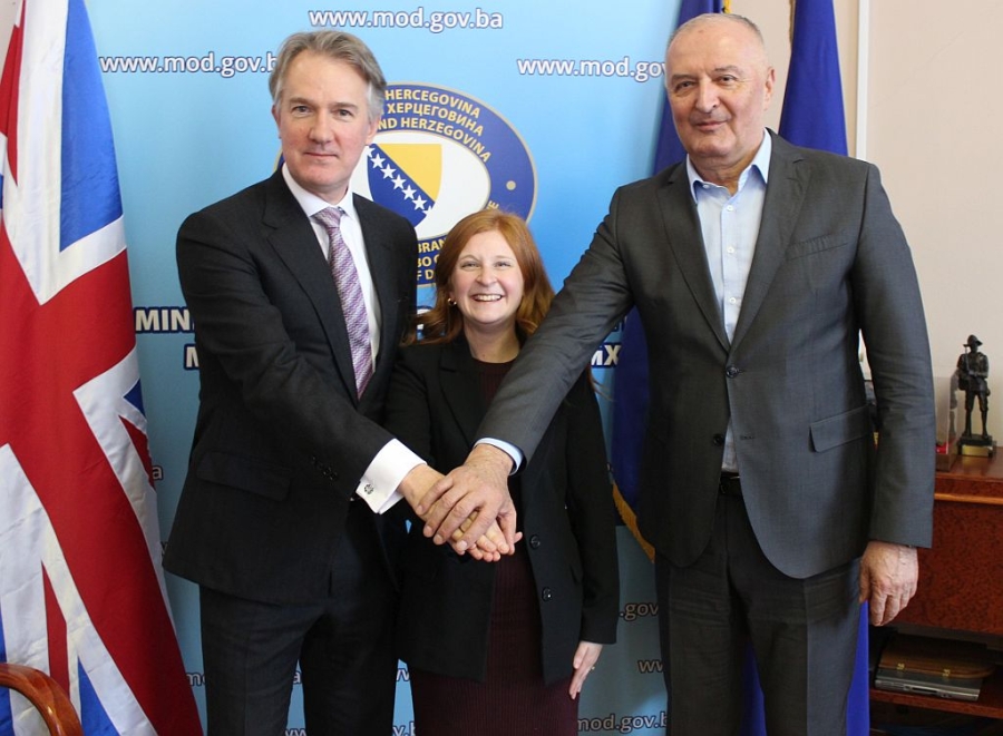 Ministar odbrane Bosne i Hercegovine Zukan Helez, danas je sa zamjenikom za politiku i planove Slavenom Galićem, u službenu posjetu primio ambasadora Ujedinjenog Kraljevstva Velike Britanije i Sjeverne Irske u BiH Juliana Reillyja.