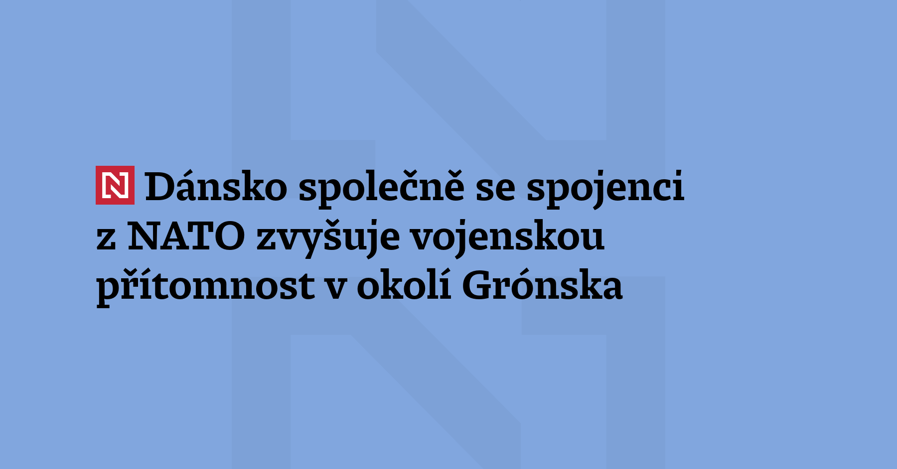 Grónská vláda oznámila, že Dánsko ode dneška společně se spojenci z NATO zvyšuje vojenskou přítomnost v okolí Grónska v rámci slibu posílit obranu v Arktidě. Vojenské jednotky v oblasti absolvují výcvik, který je má připravit na operace v arktických podmínkách. Cílem cvičení je posílit akceschopnost Severoatlantické aliance v regionu a zvýšit jeho bezpečnost. Americká administrativa v posledních týdnech otevřeně hovoří o svých ambicích získat Grónsko, […]
