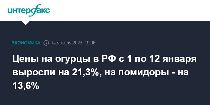 Цены на огурцы в РФ с 1 по 12 января выросли на 21,3%, на помидоры - на 13,6%, сообщил Росстат в среду.