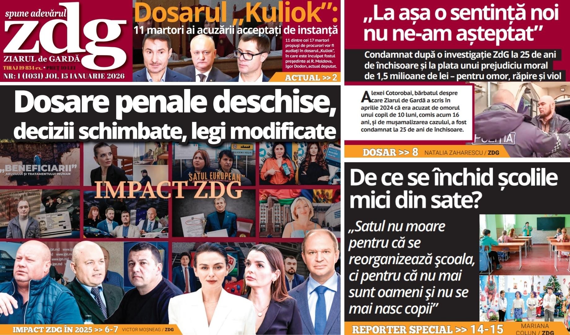 Prima ediție a ziarului tipărit aduce pe prima pagină impactul ZdG din anul 2025. În rubrica Impact citiți despre dosarele penale deschise, deciziile luate și legile modificate în Parlamentul R. Moldova, în urma mai multe articole publicate de Ziarul de Gardă. Datele oficiale arată că aproape una din zece școli din R. Moldova are sub...