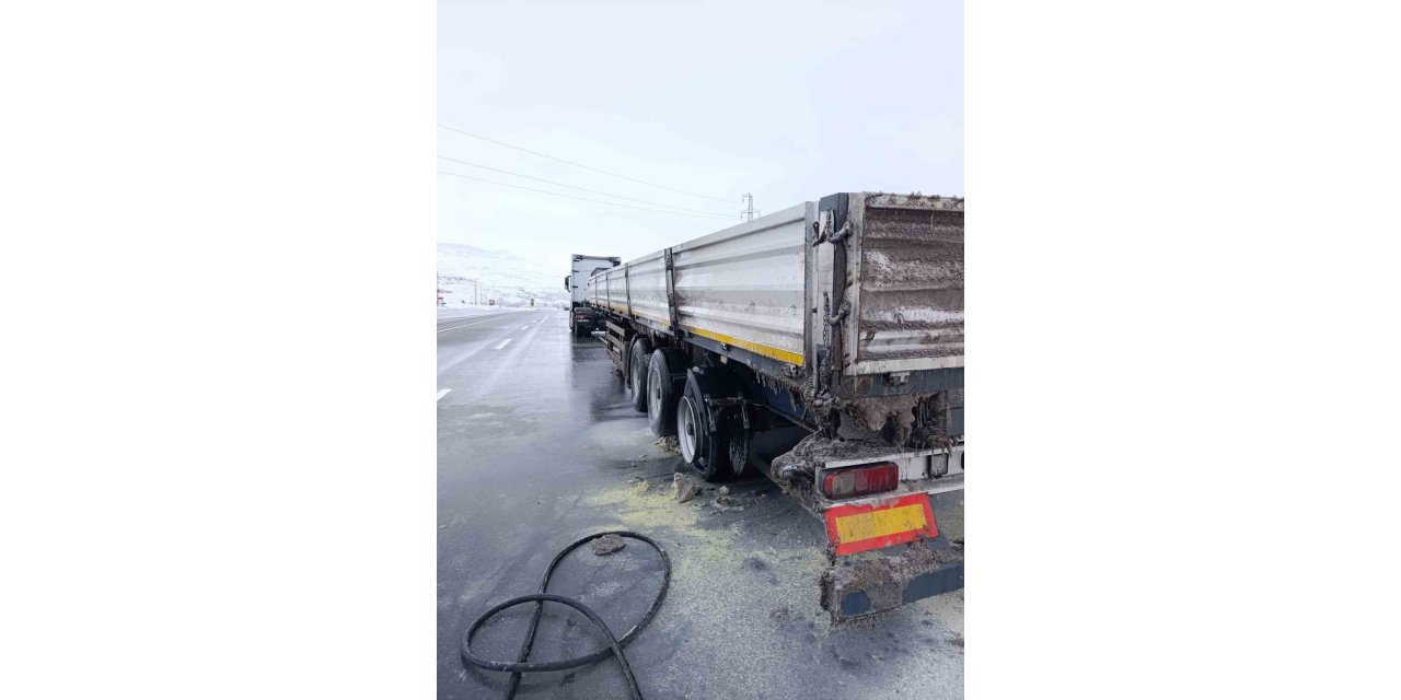 Van-Erciş kara yolunda seyir halindeki tırın yanan lastikleri itfaiye ekipleri tarafından söndürüldü.