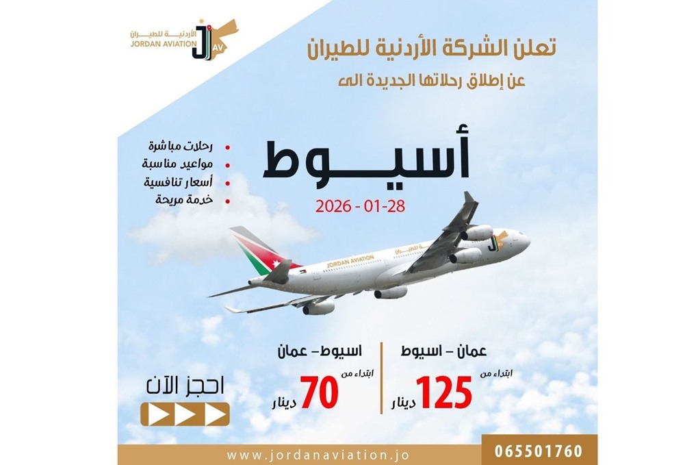 الأردنية للطيران تفتتح خطًا جويًا جديدًا بين عمّان وأسيوط بأسعار منافسة