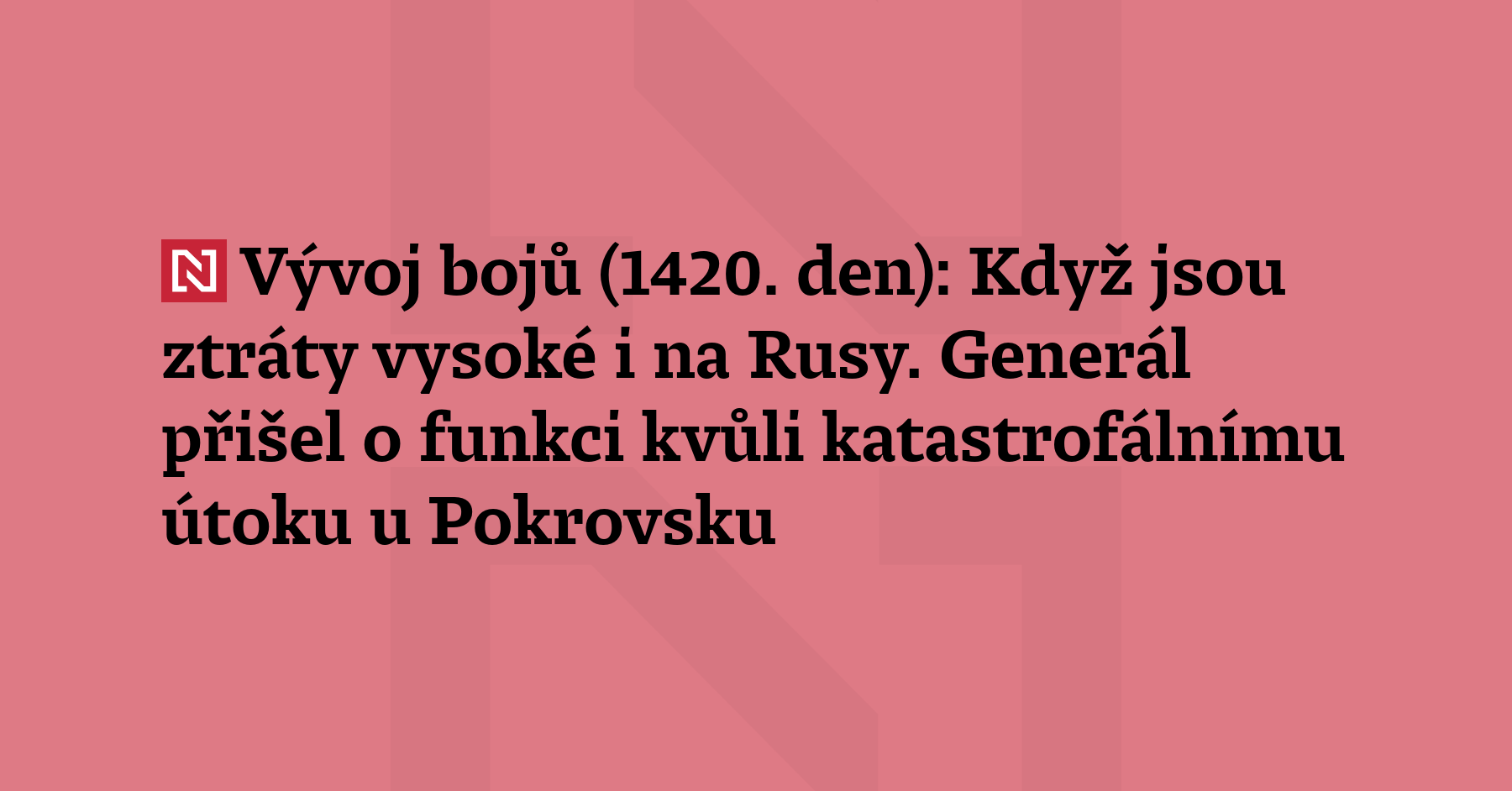 Vývoj bojů (1420. den): Moskva odvolala ruského generála Suchraba Achmedova, předcházel tomu mimořádně neúspěšný předvánoční útok nedaleko Pokrovsku. Armáda Achmedovův odchod vítá, nešlo totiž o jediné jeho selhání. Ruské vojáky nechal ve velkém umírat už dříve.