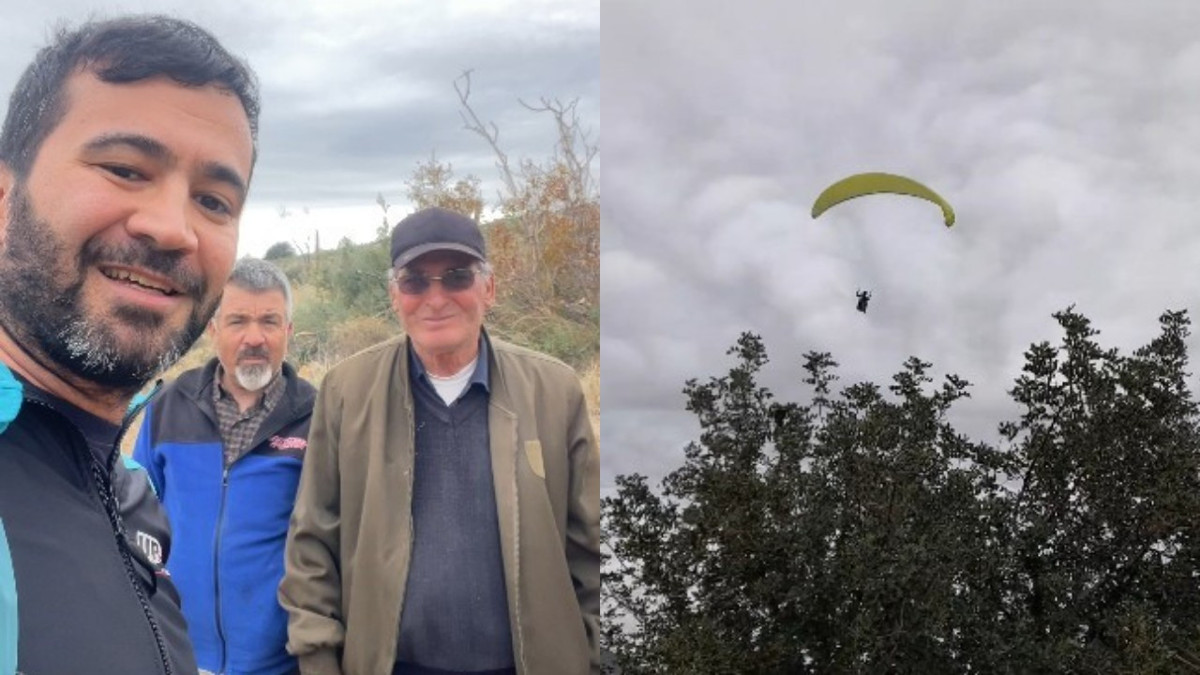 Mersin'de fidan dikimi yapan orman işçileri, yemek molası sırasında uçuş yapan yamaç paraşütçüsüne seslenerek çaya davet etti. Daveti karşılıksız bırakmayan paraşütçü iniş yaparak işçilerin yanına giderken ortaya çıkan samimi ve gülümseten anlar cep telefonu kamerasına saniye saniye yansıdı.