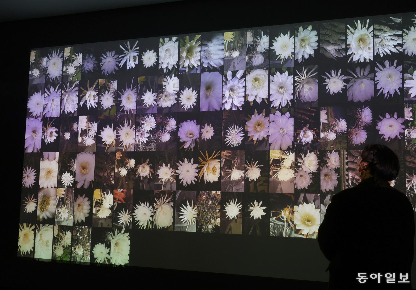 서울 노원구 서울시립 북서울미술관에서 한 관람객이 ‘꽃 시계―안나 리들러’ 작품 전시를 감상하고 있다. 인공지능(AI) 데이터를 활용한 창작 예술 활동으로 주목받는 안나 리들러의 작품을 선보이며 3월 22일까지 열린다. 매주 월요일은 휴관, 관람료는 무료다.