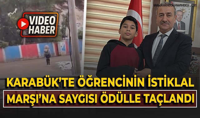 Karabük’te okula giderken kar yağışı altında İstiklal Marşı’na saygı duruşunda bulunup marşa eşlik eden 12 yaşındaki Jahangir Gapurjanov, örnek davranışı nedeniyle İl Milli Eğitim Müdürü Nevzat Akbaş tarafından ödüllendirildi.