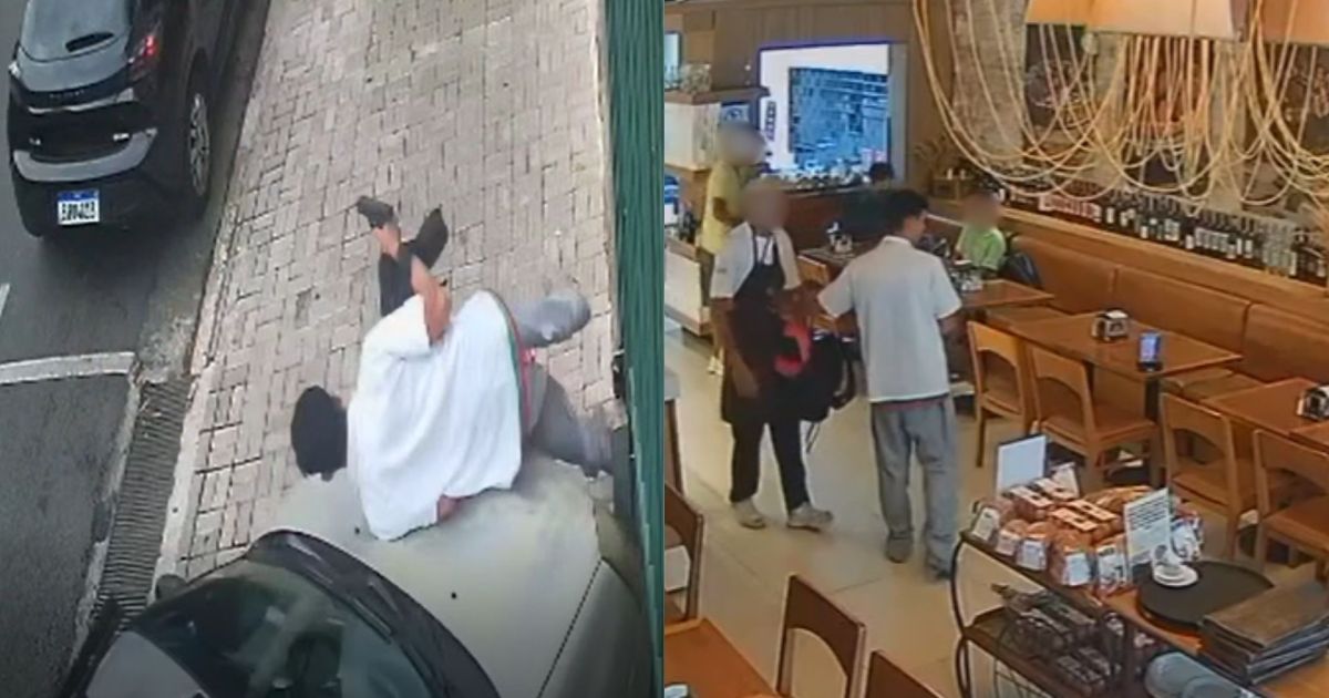 Suspeitos foram surpreendidos por policial civil após o crime; câmeras flagraram a ação dentro e fora do estabelecimento