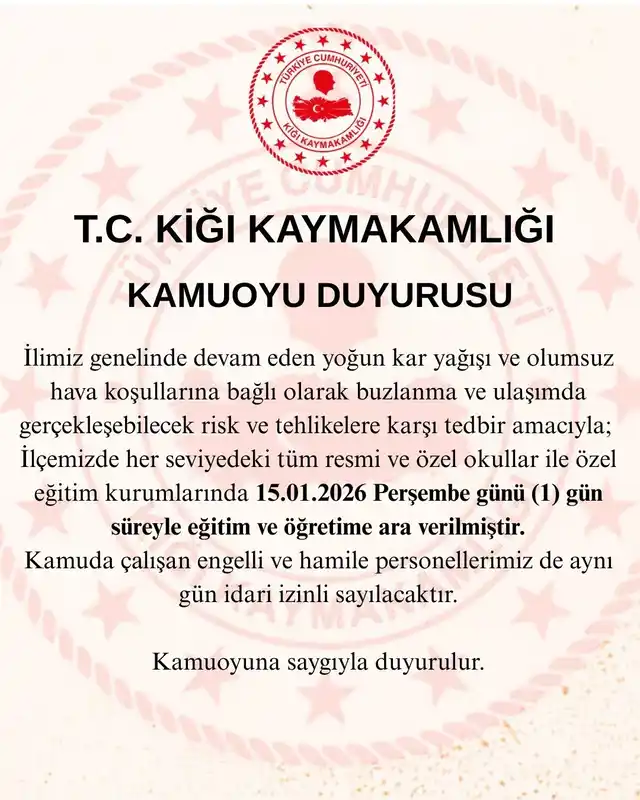 kiğı ilçesinde eğitime 1 gün ara verildi
