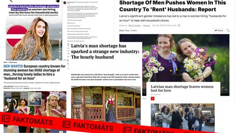 Ja lieto sociālos tīklus, decembra sākumā droši vien būsi pamanījis rakstus par vīriešu trūkumu Latvijā un ka latviešu sievietes izmisumā nomājot "vīrus uz stundu". Papētot nedaudz dziļāk, aiz "klikšķu virsrakstiem" atklājas daudzi zemūdens akmeņi, piemēram, autori nemaz nav runājuši ar rakstos citētajiem Latvijas sabiedrībā zināmajiem cilvēkiem. Taču viltus ziņas jau izplatījušās visā pasaulē.