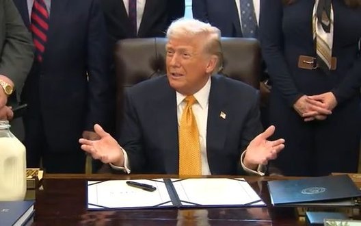 Президент США Дональд Трамп 14 січня з’явився в Овальному кабінеті з пляшкою молока під час церемонії підписання законопроєкту про обов'язкове його внесення в Національну програму шкільних обідів.