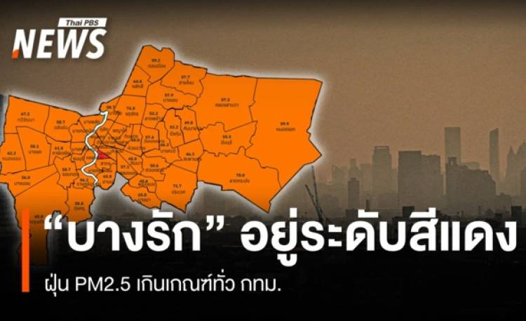 วันนี้ (15 ม.ค.2569) เวลา 07.00 น. ศูนย์ข้อมูลคุณภาพอากาศกรุงเทพมหานคร รายงานสถานการณ์ฝุ่นละอองขนาดไม่เกิน 2.5 ไมครอน (PM 2.5) ในกรุงเทพมหานคร ค่าเฉลี่ย 58.5 มคก.ต่อ ลบ.ม. (ค่ามาตรฐาน 37.5 มคก.ต่อ ลบ.ม.) 12 อันดับเขต ค่าฝุ่นPM2.5สูงสุด เขตบางรัก 87.2 มคก.ต่อ ลบ.ม. เขตสาทร 74.6 มคก.ต่อ ลบ.ม. เขตจตุจักร 74 มคก.ต่อ ลบ.ม. เขตปทุมวัน 72.6 มคก.ต่อ ลบ.ม. เขตประเวศ 71.7 มคก.ต่อ ลบ.ม. เขตลาดกระบัง 70 มคก.ต่อ ลบ.ม. เขตทวีวัฒนา 67.2 มคก.ต่อ ลบ.ม. เขตยานนาวา 65.8 มคก.ต่อ ลบ.ม. เขตบางนา 65.8 มคก.ต่อ ลบ.ม. เขตบางขุนเทียน มคก.ต่อ ลบ.ม. เขตหลักสี่ 64.8 มคก.ต่อ ลบ.ม. เขตหนองแขม 62.2 มคก.ต่อ ลบ.ม. กรุงเทพเหนือ 53.2 - 74 มคก.ต่อ ลบ.ม. ภาพรวมอยู่ในเกณฑ์เริ่มมีผลกระทบต่อสุขภาพ, กรุงเทพตะวันออก 46.3 - 71.7 มคก.ต่อ ลบ.ม. ภาพรวมอยู่ในเกณฑ์เริ่มมีผลกระทบต่อสุขภาพ, กรุงเทพกลาง 40 - 61.6 มคก.ต่อ ลบ.ม. ภาพรวมอยู่ในเกณฑ์เริ่มมีผลกระทบต่อสุขภาพ กรุงเทพใต้ 48.4 - 87.2มคก.ต่อ ลบ.ม. ภาพรวมอยู่ในเกณฑ์เริ่มมีผลกระทบต่อสุขภาพ, กรุงธนเหนือ 52.2 - 67.2 มคก.ต่อ ลบ.ม. ภาพรวมอยู่ในเกณฑ์เริ่มมีผลกระทบต่อสุขภาพ, กรุงธนใต้ 56 - 65 มคก.ต่อ ลบ.ม. ภาพรวมอยู่ในเกณฑ์เริ่มมีผลกระทบต่อสุขภาพ ฝุ่นละอองมีแนวโน้มลดลง ภาพรวมคุณภาพอากาศอยู่ในเกณฑ์เริ่มมีผลกระทบต่อสุขภาพ ทั้งนี้ ในพื้นที่ที่คุณภาพอากาศระดับสีส้ม หรือเริ่มมีผลกระทบต่อสุขภาพ ขอให้ระชาชนทั่วไป ใช้อุปกรณ์ป้องกันตนเอง เช่น หน้ากากป้องกัน PM2.5 ทุกครั้งที่ออกนอกอาคาร จำกัดระยะเวลาในการทำกิจกรรมหรือการออกกำลังกายกลางแจ้งที่ใช้แรงมาก ควรสังเกตอาการผิดปกติ เช่น ไอ หายใจลำบาก ระคายเคืองตา ส่วนประชาชนกลุ่มเสี่ยง ให้ใช้อุปกรณ์ป้องกันตนเอง เช่น หน้ากากป้องกัน PM2.5 ทุกครั้งที่ออกนอกอาคาร เลี่ยงการทำกิจกรรมหรือการออกกำลังกายกลางแจ้งที่ใช้แรงมาก ให้ปฏิบัติตามคำแนะนำของแพทย์ หากมีอาการผิดปกติให้รีบไปพบแพทย์ ส่วนพื้นที่ที่คุณภาพอากาศระดับสีแดง หรือมีผลกระทบต่อสุขภาพ ขอให้ประชาชนทุกคนงดกิจกรรมกลางแจ้ง หากมีความจำเป็นต้องทำกิจกรรมกลางแจ้งให้ใช้อุปกรณ์ป้องกันตนเองทุกครั้ง เช่น หน้ากากป้องกัน PM2.5 หากมีอาการผิดปกติให้รีบไปพบแพทย์ และผู้มีโรคประจำตัว ควรอยู่ในพื้นที่ปลอดภัยจากมลพิษทางอากาศ ให้เตรียมยาและอุปกรณ์ที่จำเป็นให้พร้อมและปฏิบัติตามคำแนะนำของแพทย์อย่างเคร่งครัด สั่งคุมแหล่งกำเนิดฝุ่น ขอขยายเวลา WFH ขณะที่ศูนย์สื่อสารการแก้ไขปัญหามลพิษทางอากาศ (ศกพ.) กรมควบคุมมลพิษ แจ้งเตือนสถานการณ์ฝุ่นละอองขนาดเล็ก PM2.5 มีแนวโน้มเพิ่มสูงขึ้นระหว่างวันที่ 14–16 ม.ค.2569 โดยพื้นที่ที่ต้องเฝ้าระวัง ได้แก่ กรุงเทพมหานครและปริมณฑล รวมถึงพื้นที