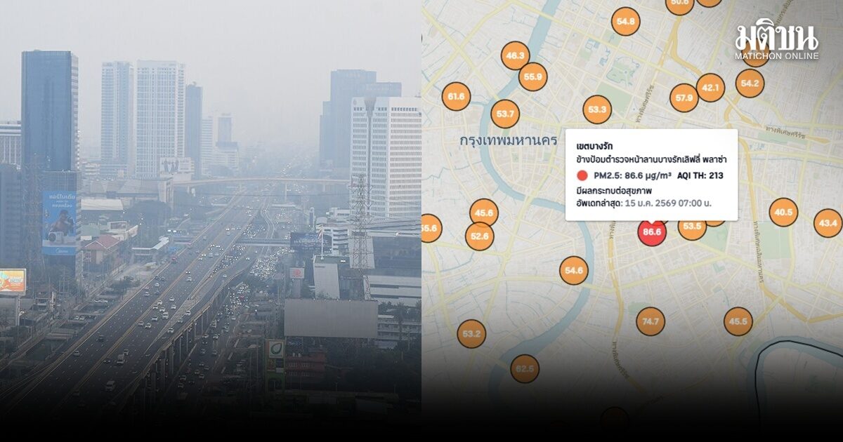 กทม.เตือนฝุ่น PM2.5 เกินมาตรฐาน เขตบางรักสีแดง อีก 49 เขตสีส้ม มีผลกระทบต่อสุขภาพ