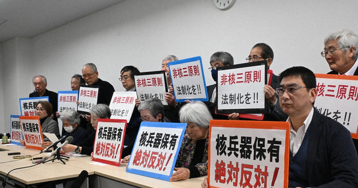 長崎の22団体「非核三原則堅持を」 官邸担当「核保有」発言に抗議