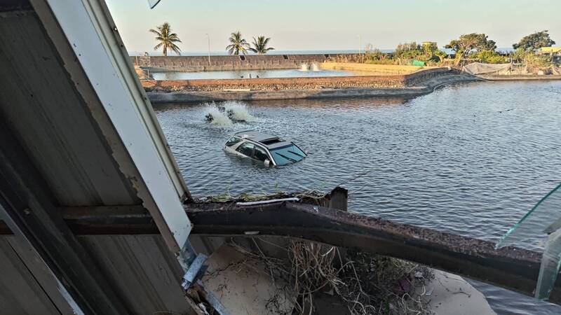 屏東男深夜駕車撞碎店家玻璃門 連人帶車衝入魚塭