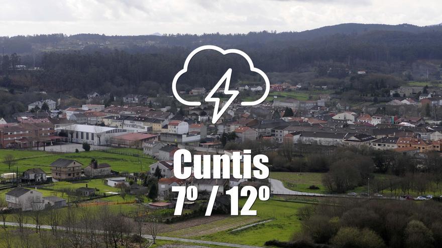 Hoy, 15 de enero de 2026, Cuntis se verá afectado por un tiempo predominantemente cubierto, con una alta probabilidad de precipitaciones a lo largo del día. Desde las primeras horas de la mañana, el cielo estará cubierto, y esta tendencia se mantendrá durante la mayor parte del día. Las temperaturas oscilarán entre los 7 y 12 grados , siendo más frescas en las horas de la mañana y alcanzando su punto máximo hacia la tarde.