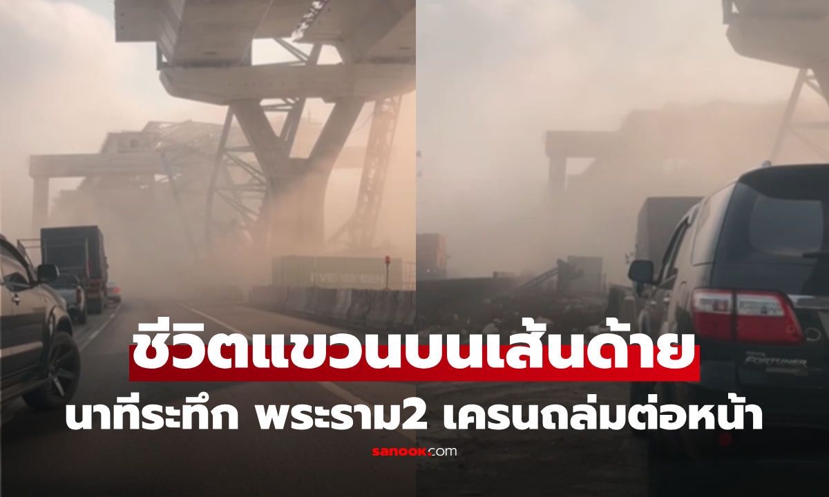 ระทึกแต่เช้า! เครนถล่มถนนพระราม 2 ทับรถยนต์ พบเสียชีวิต 2 ราย โซเชียลแชร์สนั่นคลิปกล้องหน้ารถนาทีเกิดเหตุ ถล่มต่อหน้า หวิดสลด