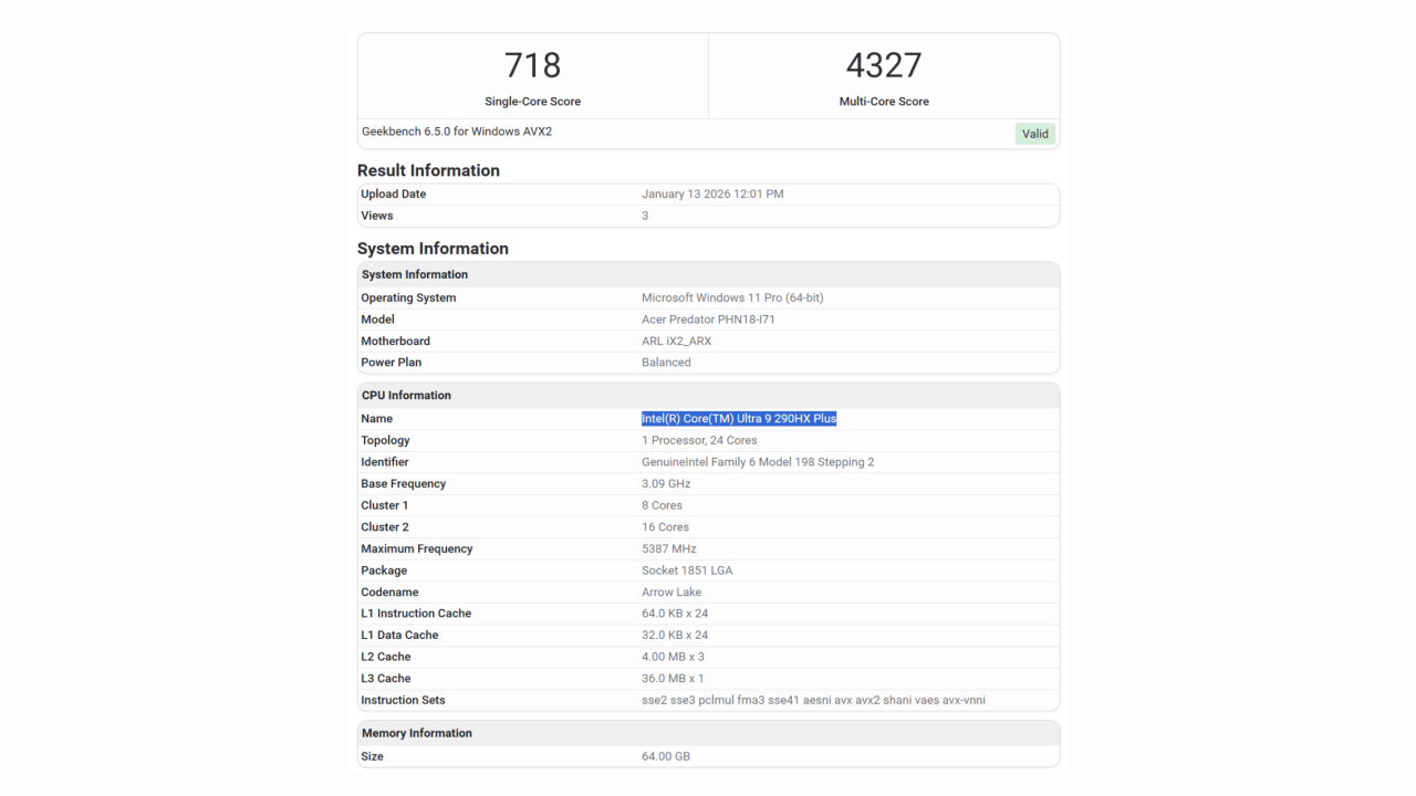 Butiran baharu cip Intel Arrow Lake Refresh muncul melalui penanda aras Geekbench