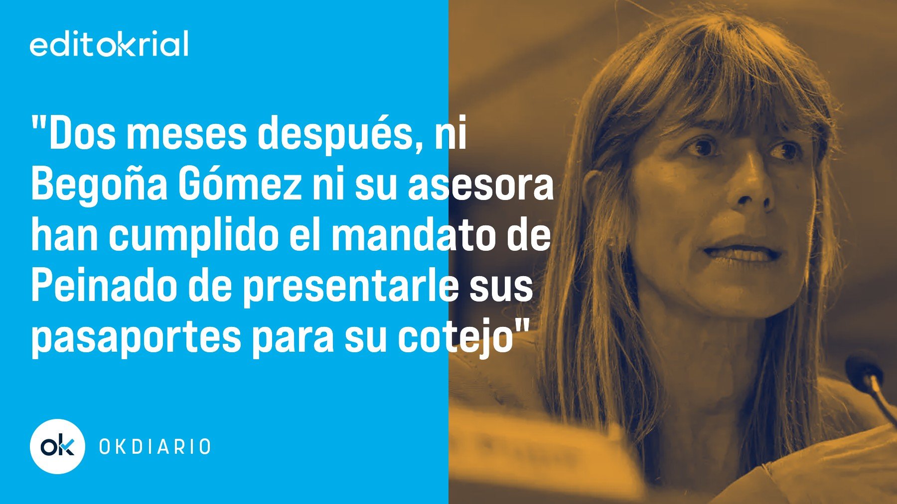 Hace dos días OKDIARIO informaba sobre la negativa de Begoña Gómez a cumplir el mandato del juez Juan Carlos Peinado de presentarle el pasaporte «a fin de precisar fechas, duración, circunstancias y coincidencias de los viajes al extranjero realizados» por la mujer del presidente y su asesora en la Moncloa, Cristina Álvarez. Se trata, en … Continuar leyendo "¿Qué teme Begoña Gómez para no presentarle al juez su pasaporte?"