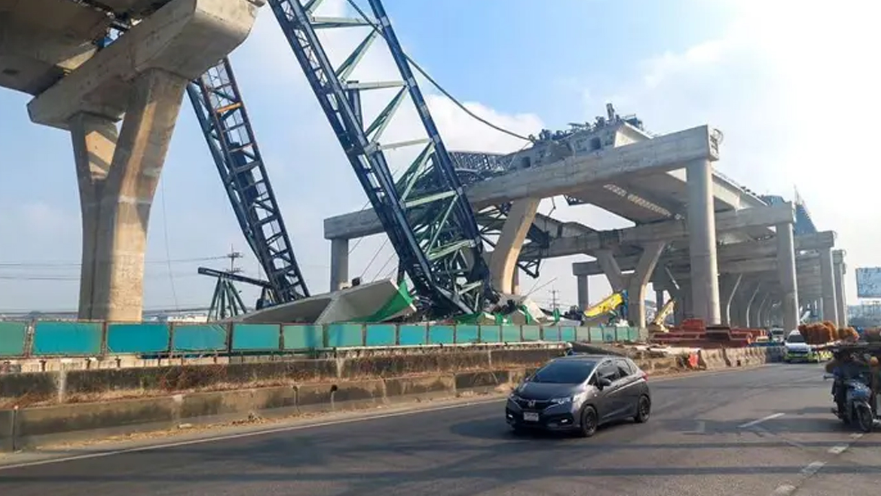Insiden berlaku pada waktu pagi di tapak pembinaan Lebuhraya Rama II apabila struktur kren itu tumbang lalu menghempap dua kenderaan di laluan bawah.