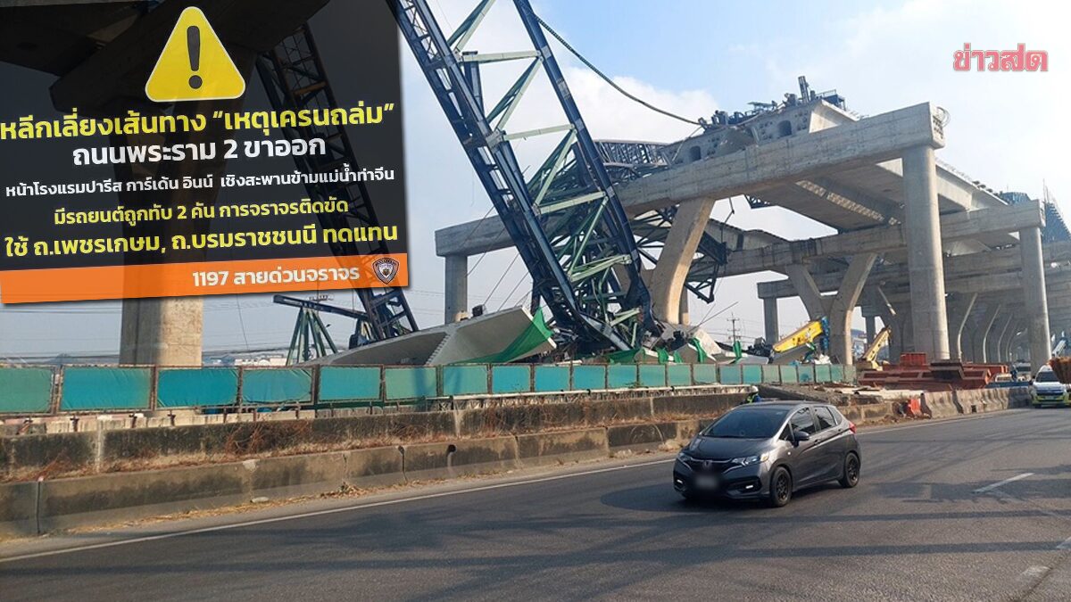 ตร.แนะเลี่ยงเส้นทางพระราม 2 เหตุเครนถล่ม มีรถยนต์ถูกทับ 2 คัน ส่งผลให้การจราจรติดขัดอย่างหนัก แนะนำให้ใช้ ถนนเพชรเกษม-บรมราชชนนี แทน กรณีเหตุคานปูน (Segment) และเครน (Launching Gantry Crane) ถล่ม ซึ่งเป็นชิ้นส่วนและอุปกรณ์ที่ใช้ก่อสร้างทางยกระดับ โครงการก่อสร้างทางหลวงพิเศษหมายเลข 82 สายทางยกระดับบางขุนเทียน-บ้านแพ้ว ช่วงเอกชัย-บ้านแพ้ว ตอน 7 กม.30+300 บริเวณถนนพระราม 2 ส่งผลให้มีผู้ได้รับบาดเจ็บเบื้องต้น จำนวน 5 คน และเสียชีวิต จำนวน 2 ราย เจ้าหน้าที่กู้ภัยนำผู้บาดเจ็บส่งโรงพยาบาล นั้น เมื่อวันที่ 15 ม.ค.69 ร.ต.อ.เขตรัฐ ชาญศิลป์ รองผู้ว่าราชการจังหวัดสมุทรสาคร ลงพื้นที่ตรวจตรวจสอบที่เกิดเหตุ และสั่งการให้หน่วยงานที่เกี่ยวข้องดำเนินการแก้ไข โดยยึดความปลอดภัยของผู้ปฏิบัติงานเป็นหลัก ขณะที่สายด่วน 1197 สายด่วนตำรวจ แนะนำให้หลีกเลี่ยงเส้นทาง “เหตุเครนถล่ม” ถนนพระราม 2 ขาออก หน้าโรงแรมปารีส […]