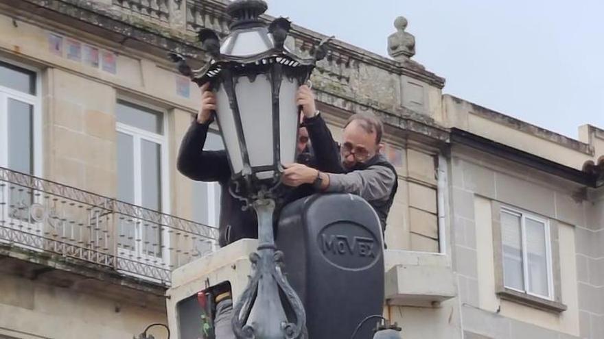 A Estrada vivió ayer un momento significativo. Las obras de peatonalización de la céntrica plaza de Galicia alcanzaron finalmente a la simbólica Farola, elemento que durante décadas ha dado nombre al cruce de caminos a partir del cual nació y se desarrolló uno de los pueblos más importantes de Galicia. Ayer, llegó el momento de desmontar la farola, aunque no este no será un «adiós» sino un «hasta luego».