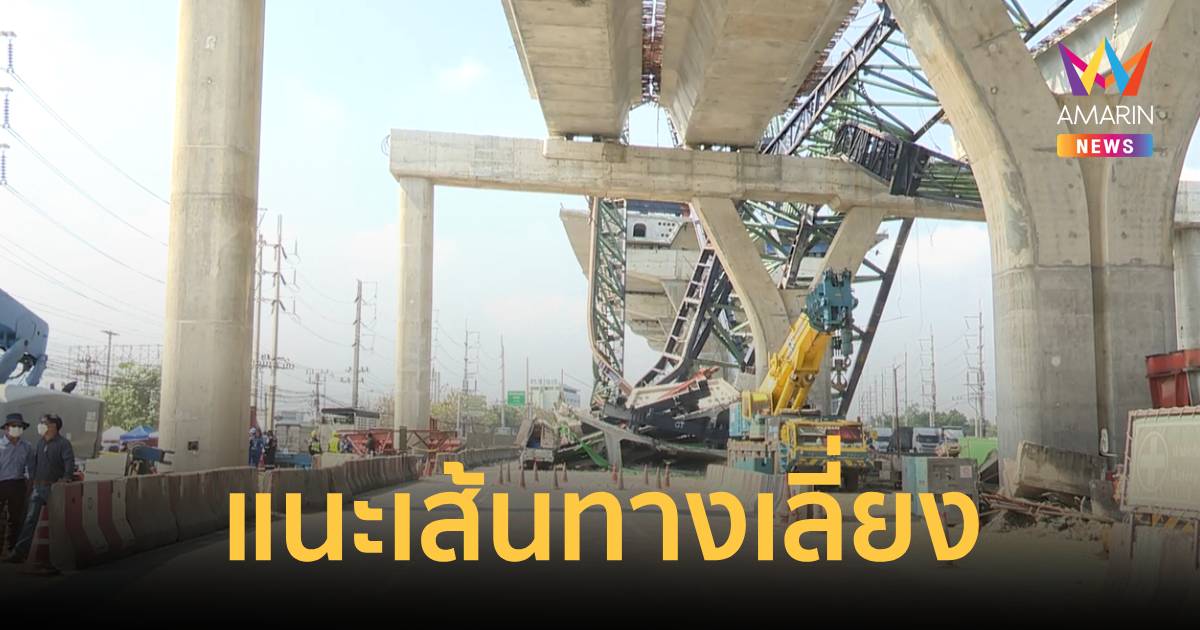แนะเส้นทางเลี่ยง! อุบัติเหตุ เครนถล่มร่วงทับรถ ที่ถนนพระราม 2